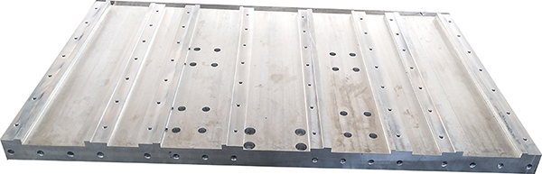 ◆六根立腿和拉大框方管為壁厚10mm,截面200*300厚壁大方管焊接,拉撐為100*200方管,臺面為60*80方管橫豎交叉雙層鋪滿臺面,立腿與大框使用斜撐加固,結(jié)構(gòu)穩(wěn)定,變形小。導(dǎo)軌面齒條面鋼帶厚度為25mm,床身重達1300KG,真正的重型加工中心床身。